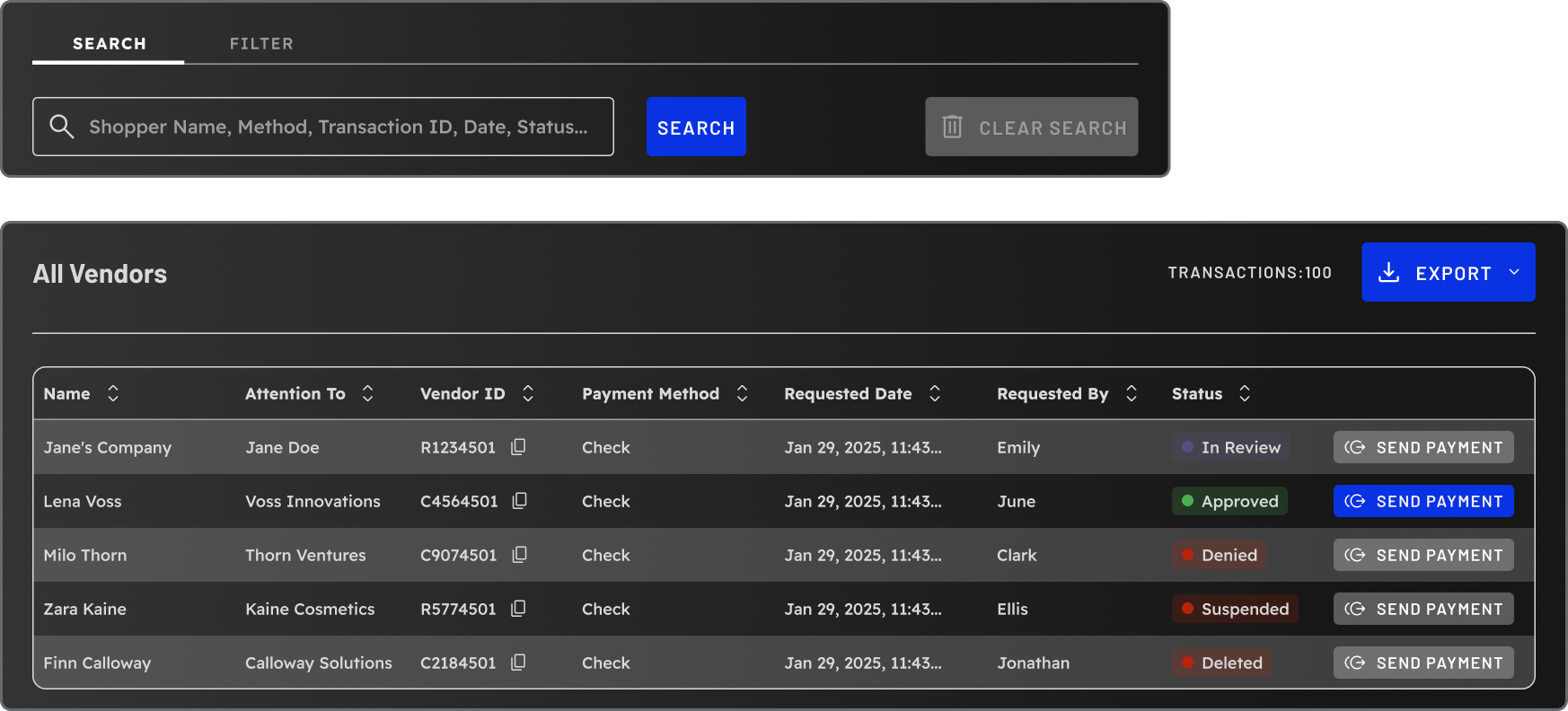 Send money to agents, wholesalers, and partners without the hassle. Use our portal or API to manage commissions, disbursements, and accounts payable—from one login.